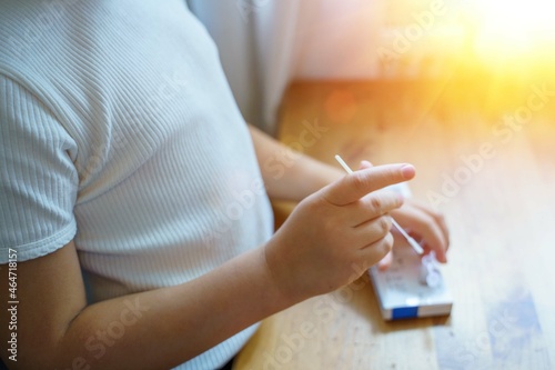 © Anastasia, Fototapeta premium Schulmädchen macht Corona Schnelltest zu Hause