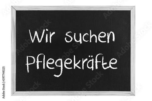 Obraz premium Schultafel mit Wir suchen Pflegekräfte