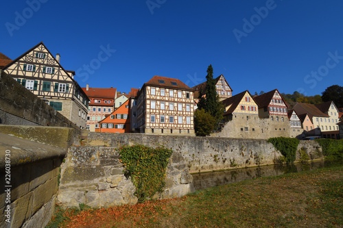 © schaeuffy, Obraz premium Schwäbisch Hall,Baden-Württemberg, Deutschland : Altstadt am Kocherufer