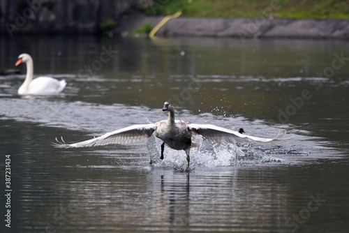 Fototapeta premium Schwan bei der Verteidigung des Reviers