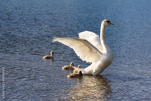 Obraz premium Schwan mit Küken