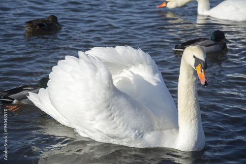 © barabasone, Naklejka premium schwan schwimmt am nymphenburgerkanal