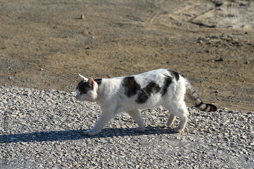 © R+R, Fototapeta premium schwarz weisse Katze im Lauf
