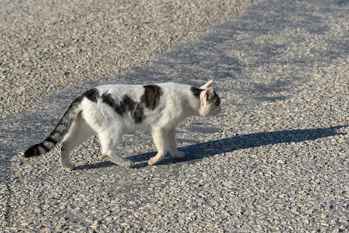 © R+R, Fototapeta premium schwarz weisse Katze im Lauf