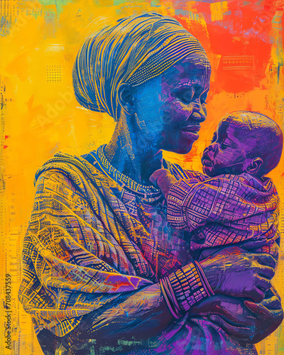 Fototapeta premium Schwarze Frau mit Kind im Arm