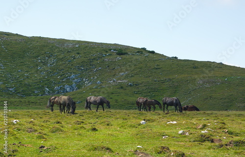 Fototapeta premium schwarze Wildpferde auf der Wiese