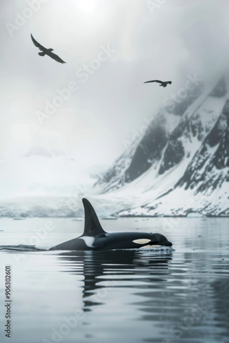 © felix_brönnimann, Fototapeta premium Schwarzer Riese in kaltem Wasser