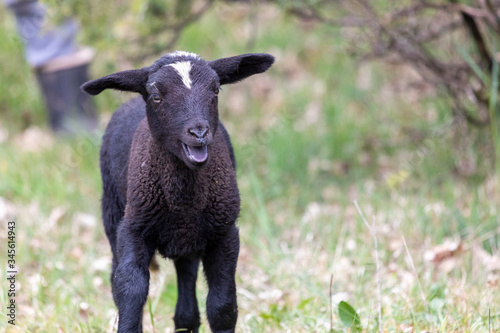 Fototapeta premium Schwarzes Lamm auf Weide