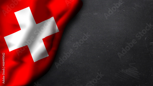 © fotogestoeber, Naklejka premium Schweiz-Flagge auf Schiefertafel