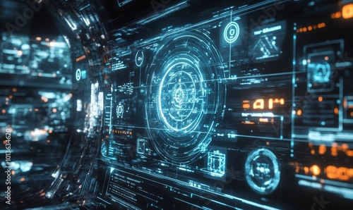 Obraz premium Sci-fi blue and orange digital interface.