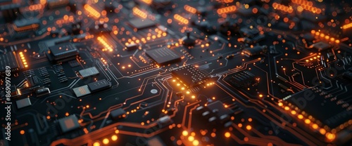 © GenSnap, Obraz premium Sci-Fi Circuit Board With Glowing Components , Wallpapers HD, Background