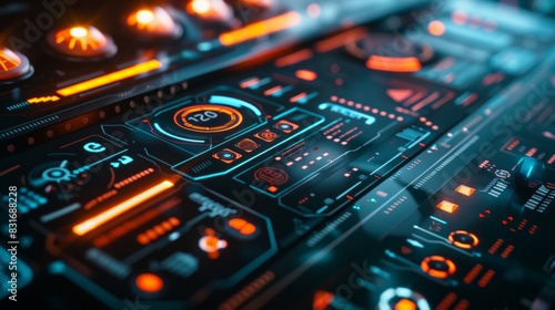 © saritwat, Obraz premium Sci-fi digital interface HUD elements mega set pack. User Interface, frame screens. Blue Callouts titles, FUI circle set, Loading bars. Dashboard display virtual reality technology screen.