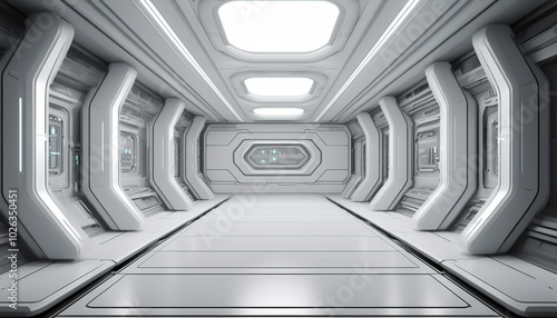 © Abele, Obraz premium sci fi wallpaper with white advanced technological panels 3d render