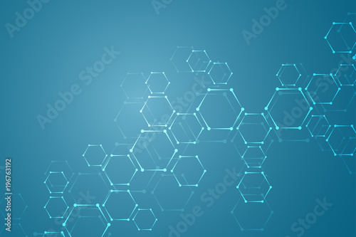 © ABCDESIGN, Obraz premium Science abstract background with hexagons and molecules.