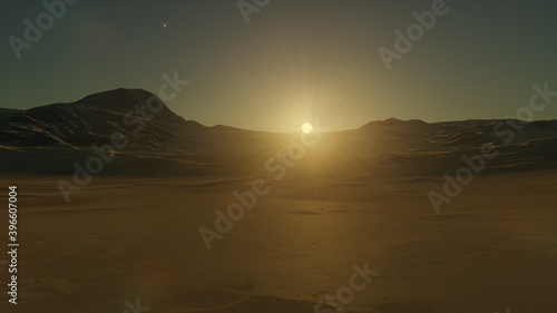 © ANDREI, Fototapeta premium science fiction illustration, alien planet landscape, view from a beautiful planet, beautiful space background 3d render