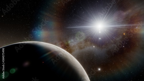© ANDREI, Fototapeta premium science fiction landscape abstract alien planets and space background 3d render
