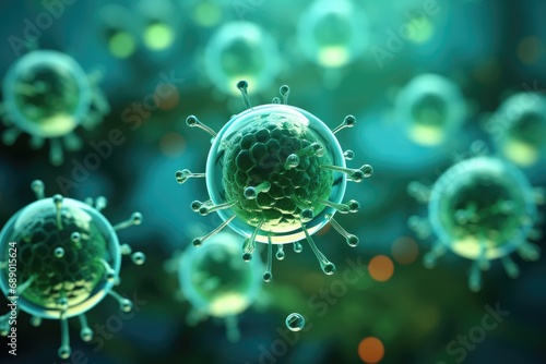 Obraz premium Science fiction microscopic view of green cells reviving dead cells.