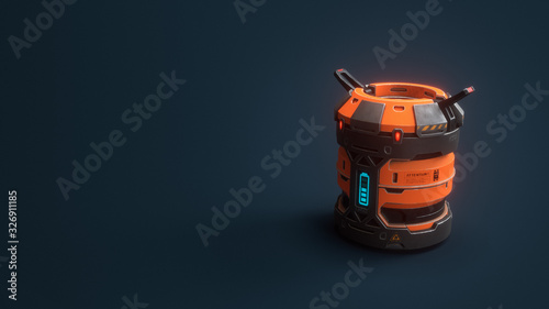 Fototapeta premium Science fiction military barrel with orange color. Concept art storage...