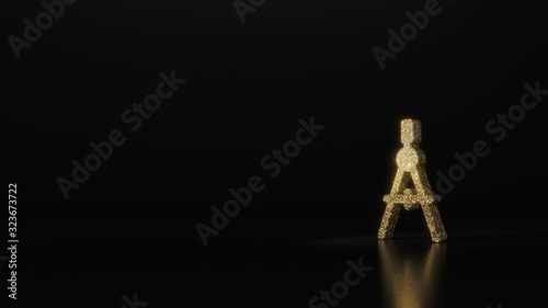 Obraz premium science glitter gold glitter symbol of compass 3D rendering on dark black background with blurred reflection with sparkles