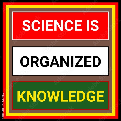 © MohammedMudassir, Fototapeta premium Science is organised knowledge, educational and motivational design quotes. Science quotes for poster design illustration.