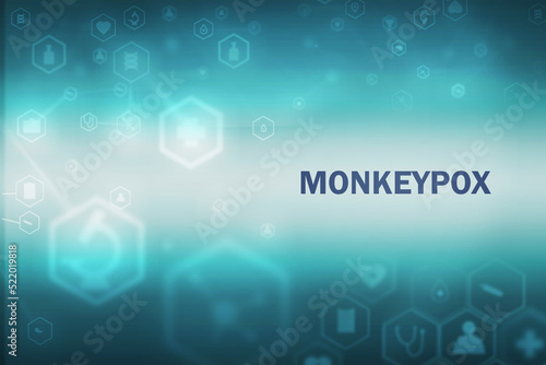 © Julia, Obraz premium Scientific blue medical banner with infographics inscription Monkeypox