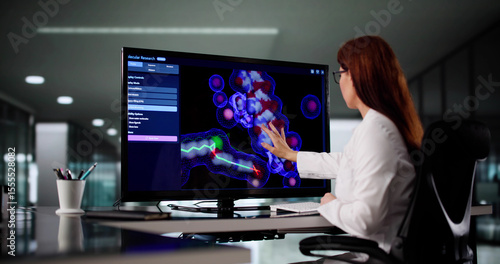 Naklejka premium Scientist Analyzes Drug Structure On Computer