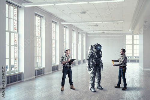© Sergey Nivens, Obraz premium Scientists designing space suit. Mixed media