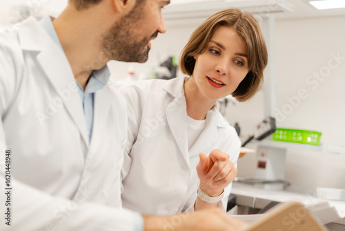© Maria Vitkovska, Fototapeta premium Scientists discussing research findings in laboratory setting