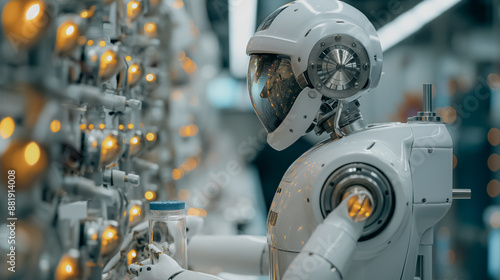 Fototapeta premium Scientists in a state-of-the-art laboratory, employing advanced robotics and AI algorithms to conduct experiments and analyze data, innovative research setting.