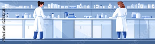 Fototapeta premium Scientists in lab coats conducting experiments in modern laboratory setting