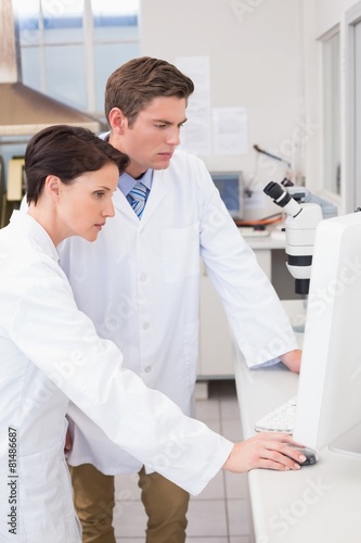 Obraz premium Scientists looking attentively at computer