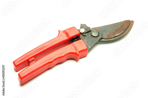 © moviephoto, Obraz premium Scissors for pruning tree branches and bushes on a white background