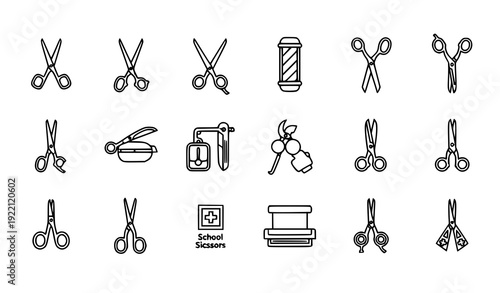 Fototapeta premium Scissors Thin Line Icons Vertical Collection Editable Stroke Vector