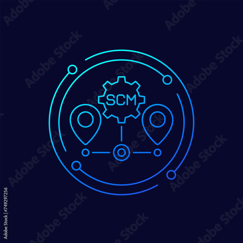 Fototapeta premium SCM icon in linear design, Supply chain management