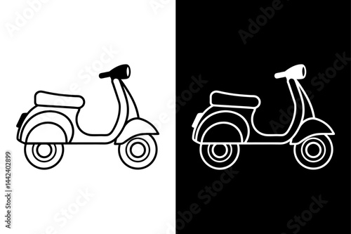 © Ali, Obraz premium Scooter Vector Line Icon Pack Black Silhouettes on White Background.