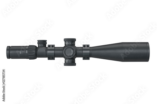 Fototapeta premium Scope optical black military device, top view. 3D graphic