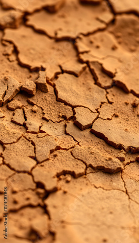 Fototapeta premium Scorched arid earth texture due to global warming in closeup, papercraft,...
