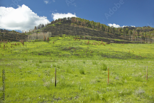 Naklejka premium Scorched hillside and fresh spring growth in Centennial Valley, Lakeview, MT