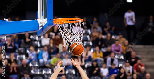 © Melinda Nagy, Fototapeta premium scoring during basketball game - ball going through hoop