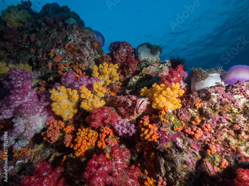 © Mayumi.K.Photography, Obraz premium Scorpionfish between corals in Mergui archipelago, Myanmar