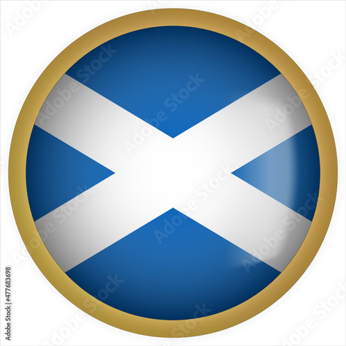 Obraz premium Scotland 3D rounded Flag Button Icon with Gold Frame