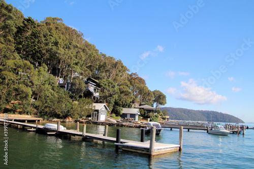 © Diane, Naklejka premium Scotland Island on the Pittwater, with docks, jetties and boat houses, New South Wales, Australia
