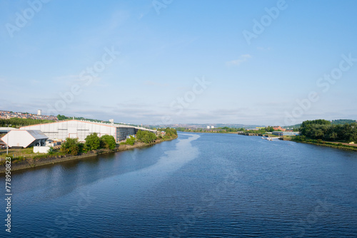 Obraz premium Scotswood Blaydon UK: 9th June 2023: View of the River Tyne and Vickers from Scotswood Bridge on sunny day