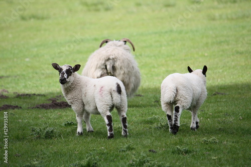 © petite usagi, Obraz premium Scottish black face lambs in a countryside farm