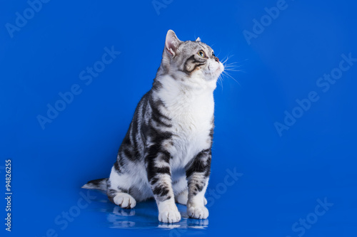 © Svetlana, Obraz premium Scottish cat on a blue background isolated