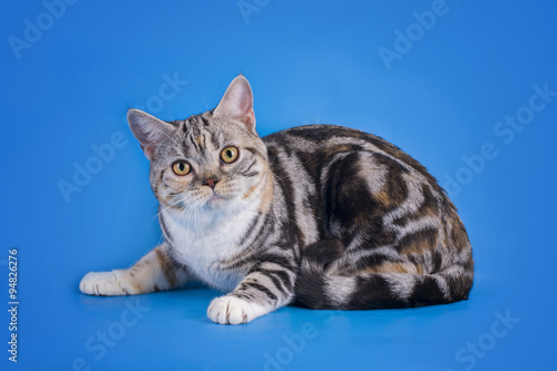 © Svetlana, Obraz premium Scottish cat on a blue background isolated