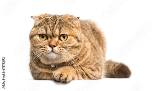 Obraz premium Scottish Fold cat lying down, isolated