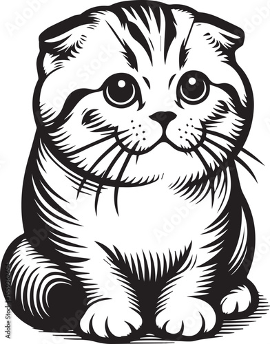 © Sarmad, Fototapeta premium Scottish Fold Cat Vector in black and white