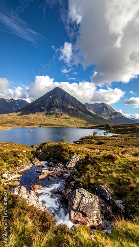 © Warda, Fototapeta premium Scottish Highlands Mountain Lake Landscape.