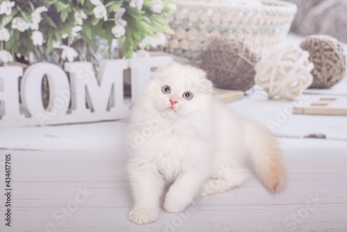 Fototapeta premium Scottish kitten highland fold white color